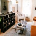 The stylish living room features a comfy sofa, a large HDTV with premium cable, a record player, and an assortment of books, making it the perfect room to gather with your group and enjoy some quality time together.