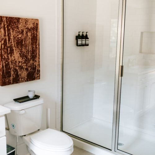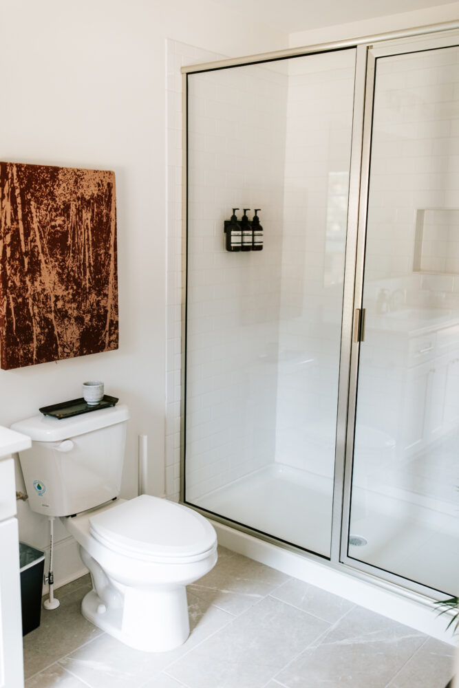 Just like the bedrooms, the bathrooms are made for ultimate comfort and relaxation. All of the bathrooms are stocked with luxury Public Goods amenities and plush towels for your convenience and comfort.