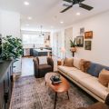 The open floor plan and beautiful natural light flowing in through the large windows make the kitchen and living room the perfect place to hang out as a whole family or group.