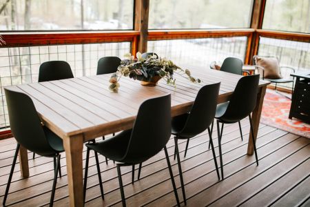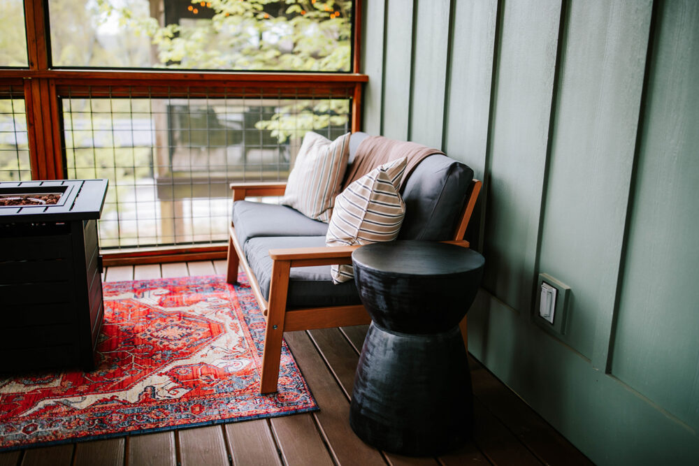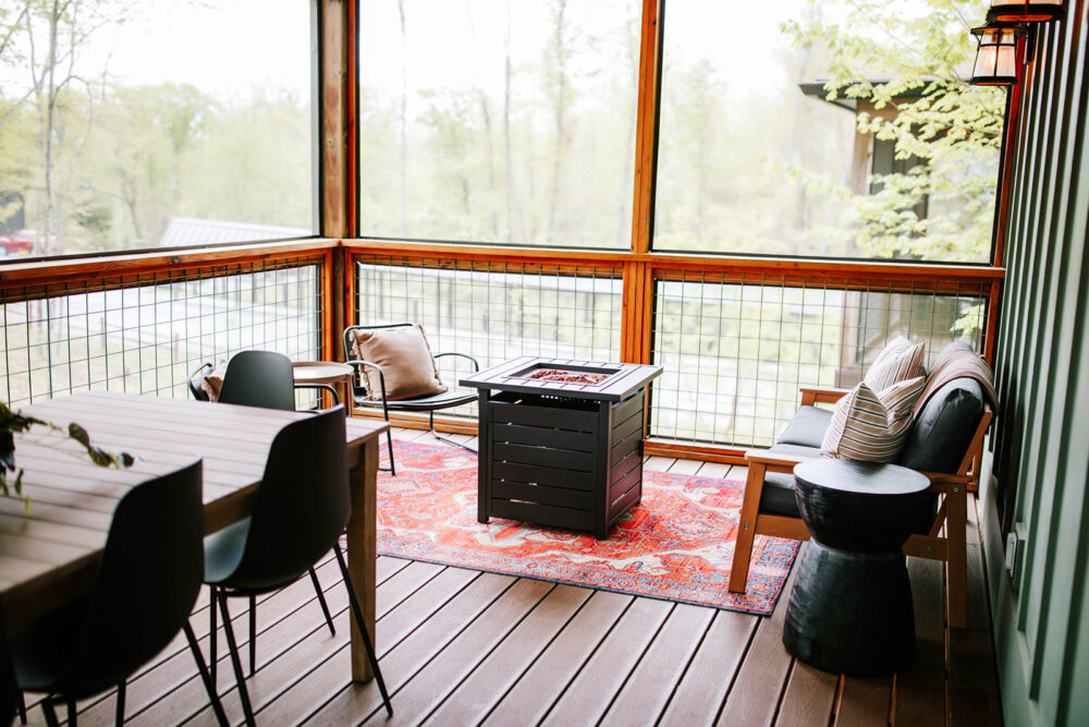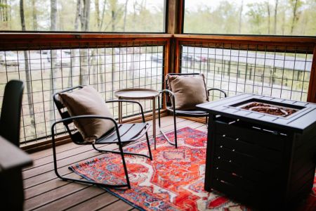 While there are plenty of outdoor activities nearby, the cabin also provides its own outdoor sanctuary for guests to enjoy. We invite you to enjoy the mountain air from the porches or settle in for a quiet evening by the outdoor propane fire table. There are plenty of seating areas for guests to sip morning coffee or enjoy a happy hour drink as the sun goes down. There is large outdoor dining table for al fresco meals.