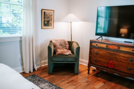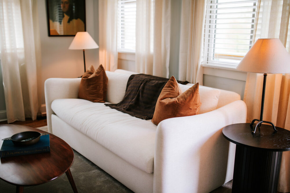 The cabin’s interior design provides a perfect backdrop for your vacation and social media photos! We also offer high-end organic linens and amenities to enhance your stay.