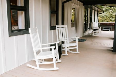 Enjoy the fresh air from the full-length front porch with rocking chairs, or relax on the back porch with dining space for four. Unwind in the private hot tub, sweat it out in the barrel sauna, or gather around the fire pit under the stars. The fenced backyard is great for privacy and safe for little ones.