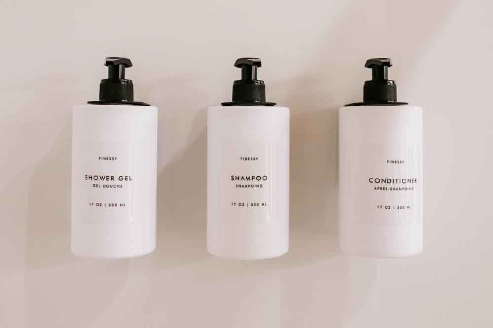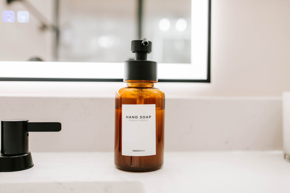 Two full bathrooms (one with shower/tub combo, one with shower only) plus a half bath ensure plenty of convenience. All are stocked with plush towels and premium toiletries.